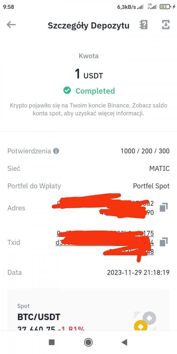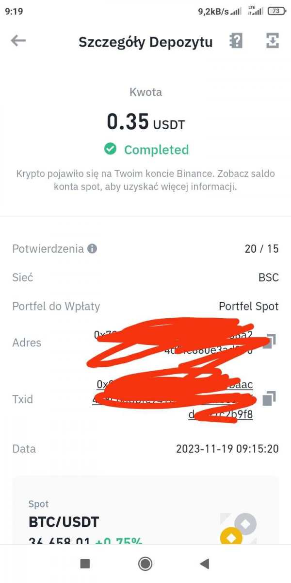 Ok. Sprawdzilem dzisiaj czy wyplaca i moge powiedziec ze tak. Niecale 15 minut i kasa na koncie Binance. Oto dowod . A i godzina w BabyCatly na zdjeciu jest 8.02 a w rzeczywistosci to 9.02. Wyplacilem 105 BCatly co daje 0.35$ . Pozdro. A i przy rejestracji aby odebrac te 500 jak dobrze wszystko wypelniliscie to przyjdzie wam niewielka ilosc usdt na Binance . Musicie to kwote pozniej wpisac na BabyCatly. I od razu wam 500 wpada. Trzeba troszke poczekac na te drobne od nich bo jest tłok , ale napewno przyjda.