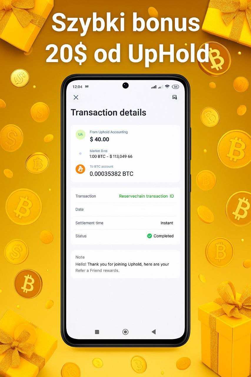 Uphold - bonus 20$ aktualne warunki, przy których bonus wpada w kilka dni.