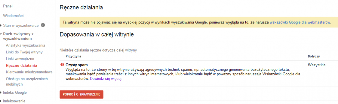 Dzień dobry, wczoraj moja strona znikła z wyszukiwarki, wejścia spadły do zera. Dzisiaj w google webmaster tools otrzymałem komunikat przedstawiony na screenie: Być może ma to jakiś związek z usunięciem z wyszukiwarki. Strona to fejki do gier, z odnosnikami do astrocasza. Z komunikatu jak widać nic bezpośrednio nie wynika, nie podali nawet przykładowych url. Nie mam więc pojęcia co zostało uznane za "szkodliwą treść", ani co miałbym usunąć. Spotkaliście się już z czymś takim? Macie pomysły jak zareagować? P.S: nie mam na stronie żadnych wirusów, a przynajmniej nic mi o tym nie wiadomo. Pozdrawiam Serdecznie! W.