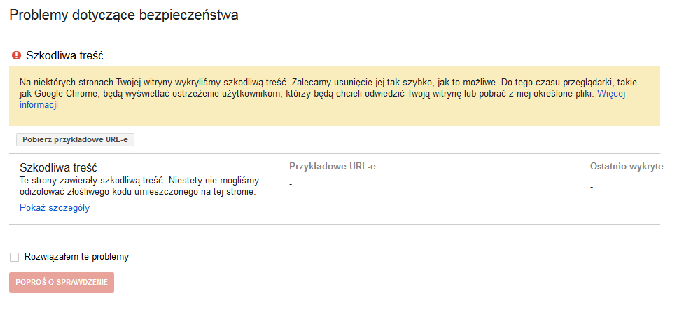 FILTR - Google Webmaster Tools - Szkodliwa Treść