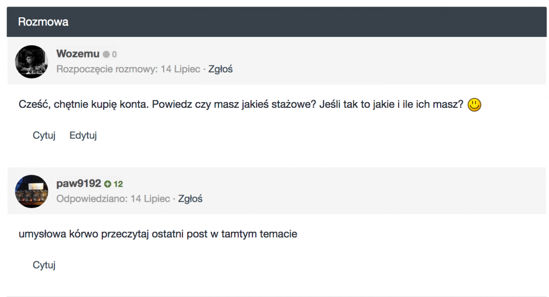 Hej, napisałem na priv ale zero odpowiedzi. Jakaś dziwna sprawa. Uważajcie.