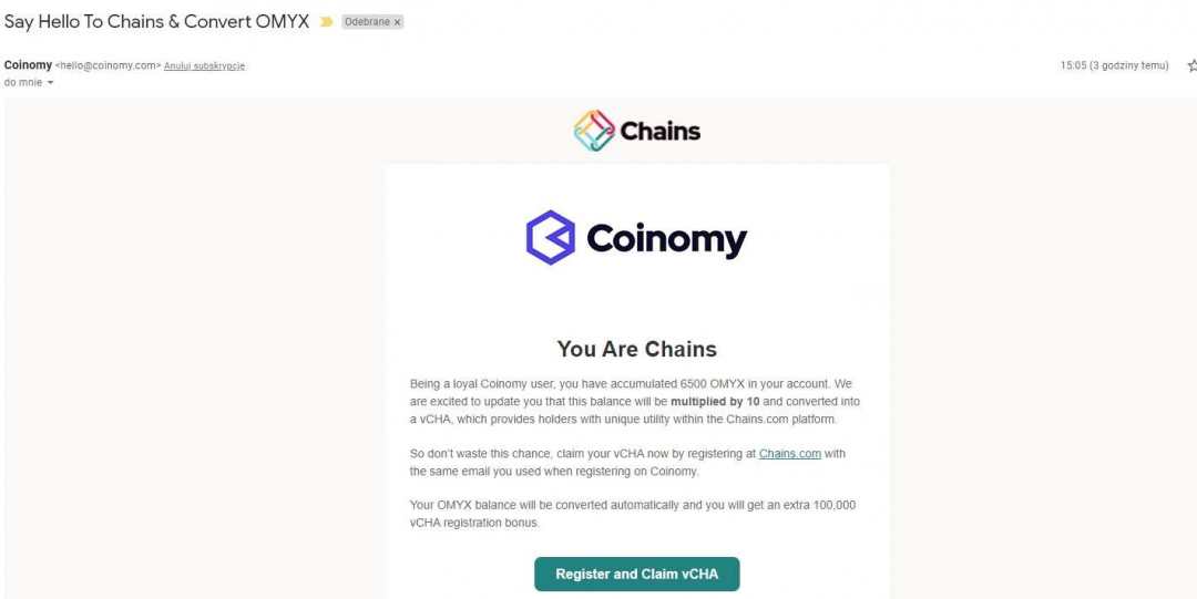 MAIL OD COINOMY - nowe tokeny, jeszcze jest beta, ale nie długo mają być, może będzie się opłacać, zawsze nie wiadomo - do tego mają jakąs współprace z COINOMY i jak się miało omyxa to można przekonwertować (screen poniżej) - nie wiem może się będzie opłacać, zobaczymy
