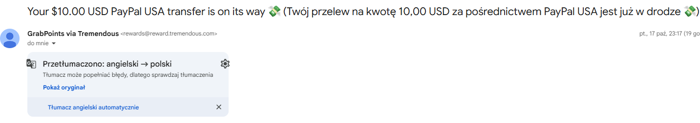 Zdobądź darmowe karty podarunkowe z Grab Points. Płaci na paypal od 2014 roku