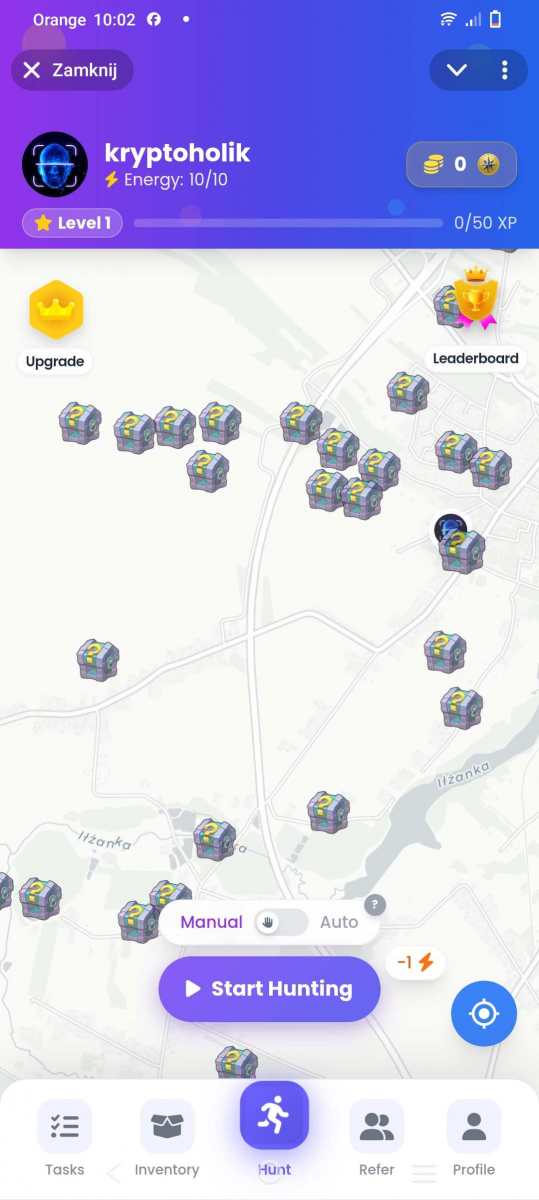 HUFI to projekt tokena HUFI (projekt podobny do NOTCOIN) można go zdobyć za free w grze HuntFi wystarczy zamiast przewijać fb czy insta to zabrać ze sobą na spacer telefon z włączonym GPS i polować na pojawiające się skrzynie z cennymi tokenami HUFI . Ref. link - https://t.me/HuntFiBot/hunt?startapp=8BE1CBE6 Czysty - https://t.me/HuntFiBot/ Czym więcej zbierasz skrzynek tym więcej nagród z zadań dostajesz! Nie musisz kupować VIP -chyba że chcesz sięgać dalsze skrzynie z skarbami bez podchodzenia do nich blisko . VIP przydaje się też gdy w nocy włączysz auto polowanie na skarby bo ma więcej energii dziennie a energia to jedna skrzynia znaleziona przez auto polowanie . 31.08.2025 zakończy się pierwszy konkurs na to kto więcej zdobędzie HUFI w grze znajdując skrzynki.