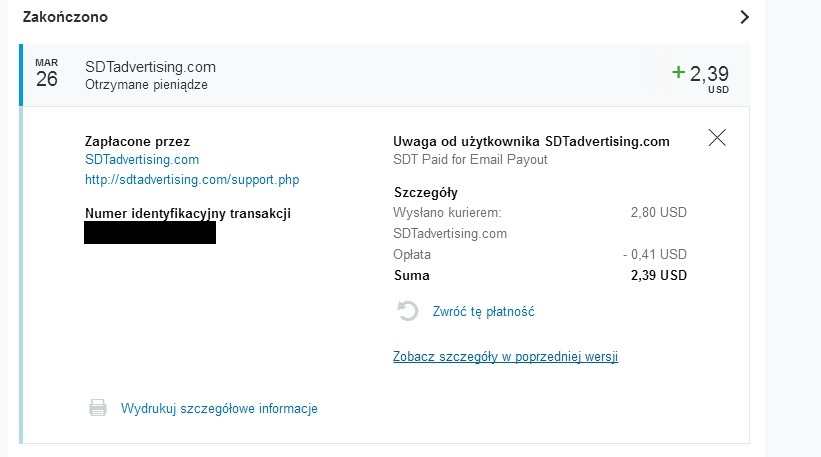 Dobra, uzbierałem 4$ w chwile, bo dzisiaj było 5 reklam za 0,5$, zlecenie zrobione, zobaczymy czy wypłata dojdzie. Oczywiście jeżeli tak to wkleje potwierdzenie